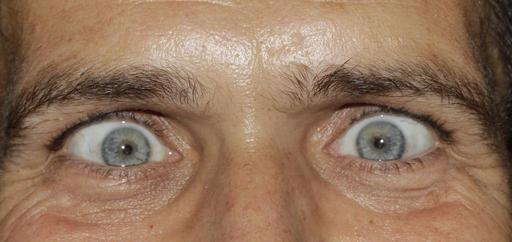 Keywords: eyes see squint iris pupils eyelashes eyebrows man face person head male portrait human view emotion crazy