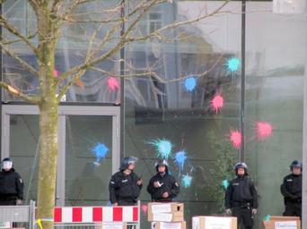 Keywords: EZB Neubau November 2014 Farbbeutel.jpg de Farbbeutel an der Fassade des EZB-Neubaus own Stefan Bellini 2014-11-22 Location 50 6 31 73 N 8 42 11 48 E Blockupy 2014 Frankfurt am Main Photographs taken on 2014-11-22 Frankfurt am Main Paint bombs Construction of the European Central Bank Headquarters in November 2014 Files by User Stefan Bellini - Photos taken in Hesse Taken with Canon PowerShot SX230 HS Cc-zero