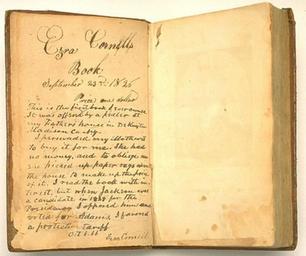 Keywords: Ezra Cornell's first book.jpg Ezra Cornell has been dead for over 70 years Retrieved from http //rmc library cornell edu/presidents/view_image php img 5 this page PD-old 1826 Endpapers 1819 books Inscribed books Ezra Cornell ImageNote 1 273 88 8 8 500 418 2 El cuento que nunca empezo ImageNoteEnd 1 Needing transcription de |