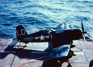 | Keywords: F4U-4 VMF-212 on cat of USS Badoeng Strait (CVE-116) 1952.jpeg A U S Marine Corps Vought F4U-4 Corsair from Marine Fighter Squadron VMF-212 is on the catapult ready for a launch from the U S Navy escort carrier USS Badoeng Strait CVE-116 for a combat strike in Korea Note the ca 90 mission markers on the plane http //collections naval aviation museum/emuwebdoncoms/pages/doncoms/AdvQuery php U S Navy National Museum of Naval Aviation photo No http //collections naval aviation museum/emuwebdoncoms/pages/doncoms/Display php irn 15816 QueryPage 2Femuwebdoncoms 2Fpages 2Fdoncoms 2FAdvQuery php 1996 253 7154 010 1952 EM2c Gerald H Haddock U S Navy PD-USGov-Military-Navy F4U Corsairs in the Korean War F4U-4 Corsair Marine Fighter Attack Squadron 212 USS Badoeng Strait CVE-116 |