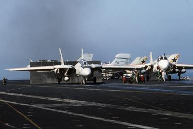Keywords: F-14A KA-6D on cat USS America (CV-66) 1986.JPEG A U S Navy Grumman F-14A Tomcat aircraft from fighter squadron VF-33 Starfighters left and a Grumman KA-6D Intruder aircraft from attack squadron VA-34 Blue Blasters prepare to take off the aircraft carrier USS America CV-66 during flight operations off the coast of Libya on 17 April 1986 A Grumman EA-6B Prowler from Marine tactical electronic warfare squadron VMAQ-2 Det Y Playboys is visible in the background The aircraft were assigned to Carrier Air Wing 1 CVW-1 aboard the America for a deployment to the Mediterranean Sea from 10 March to 15 September 1986 On 15 April 1986 America´s aircraft participated in Operation El Dorado Canyon the bombing of Libya U S DefenseImagery http //www defenseimagery mil photo VIRIN DN-ST-86-10023 http //www dodmedia osd mil/DVIC_View/Still_Details cfm SDAN DNST8610023 JPGPath /Assets/1986/Navy/DN-ST-86-10023 JPG 1986-04-17 PHAN David Casper USN PD-USGov-Military-Navy F-14A Tomcat on flight decks KA-6D Intruder Fighter Squadron 33 United States Navy Attack Squadron 34 United States Navy Operation El Dorado Canyon Aboard USS America CV-66 Marine Tactical Electronic Warfare Squadron 2 F-14 Tomcat aircraft carrier launches EA-6B Prowler US Marine Corps |