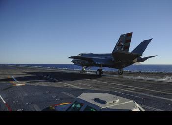 Keywords: F-35C Lightning II conducts 1st carrier launch 141104-N-WM477-124.jpg en An F-35C Lightning II carrier variant joint strike fighter launches for the first time from the flight deck of the aircraft carrier USS Nimitz CVN 68 The F-35 Lightning II Pax River Integrated Test Force from Air Test and Evaluation Squadron VX 23 is conducting initial at-sea trials aboard Nimitz U S Navy photo by Mass Communication Specialist 3rd Class Aiyana S Paschal/Released 2014-11-04 Petty Officer 3rd Class Aiyana Paschal https //www dvidshub net/image/1645265 141104-N-WM477-124 2014-11-05 21 05 USS NIMITZ AT SEA PD-USGov-Military-Navy F-35C Lightning II aircraft carrier launches USS Nimitz CVN-68 Images from DoD uploaded by Fæ |