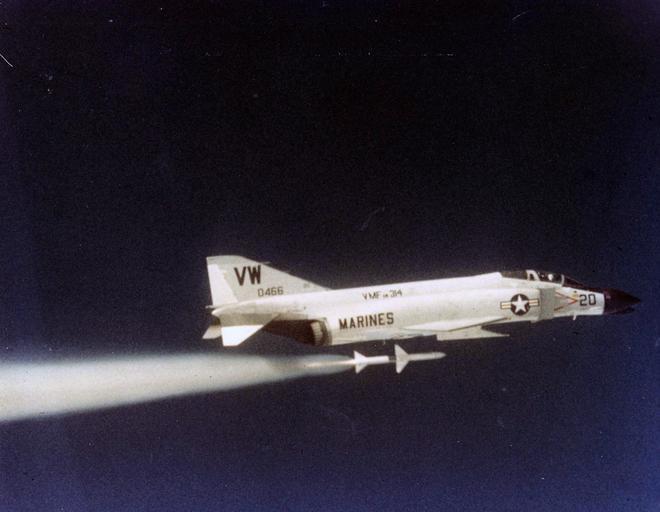 Keywords: F-4B Phantom VMFA-314 firing AIM-7 c1961.jpeg A U S Marine Corps McDonnell F-4B-13-MC Phantom II BuNo 150466 of Marine All-Weather Fighter Squadron VMF AW -314 Black Knights firing an AIM-7 Sparrow missile http //collections naval aviation museum/emuwebdoncoms/pages/doncoms/AdvQuery php U S Navy National Museum of Naval Aviation photo No http //collections naval aviation museum/emuwebdoncoms/pages/doncoms/Display php irn 35828 QueryPage 2Femuwebdoncoms 2Fpages 2Fdoncoms 2FAdvQuery php 1996 488 067 028 ca 1961 U S Navy PD-USGov-Military-Navy F-4B Phantom II Aerial photographs of F-4 Phantom II in flight Marine Fighter Attack Squadron 314 Launches of AIM-7 Sparrow missiles |