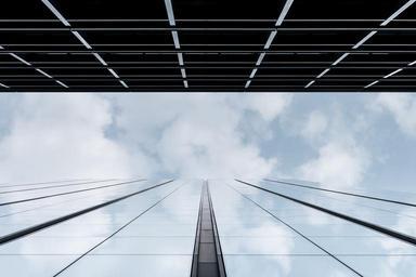 Keywords: facade building architecture glass reflection clouds sky modern contemporary exterior perspective windows tower construction urabn structure office building