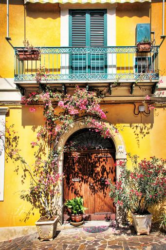 Keywords: facade calabria colorful flowers housewife color input door balcony hdr