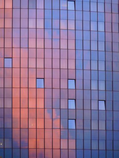 Keywords: facade home hotel maritime ulm clouds mirroring window sun red blue violet
