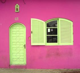Keywords: facade pink house exterior home urban front colorful residential apartment design estate modern property