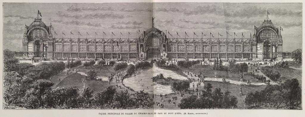 Keywords: Façade principale du Palais du Champ-de-Mars, en face du pont d'Iéna.jpg View of the Palais du Champ-de-Mars from the Iéna bridge The Palais was facing the Trocadéro and was located on the site where the Eiffel Tower is now standing 1879 engraving 16 8 x 48 4 cm Institution Brown University Library object history exhibition history credit line Simon de Vandière L' Exposition universelle de 1878 illustrée Paris Calmann Lévy 1879 accession number 1254172880386327 PD-old Engravings of buildings in Paris Images of Paris from the Brown University Library Palais du Champ-de-Mars 1878 1879 engravings |