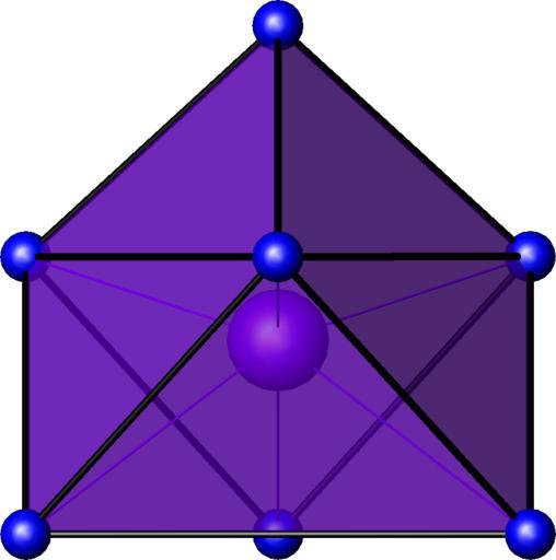 Keywords: Face-capped octahedron.png en Face-capped octahedral coordination polyhedron as found in the A form of La<sub>2</sub>O<sub>3</sub> for La fr Octaèdre à face coiffée polyèdre de coordination du La dans La<sub>2</sub>O<sub>3</sub> own Perditax 2010-11-20 Molecular geometry