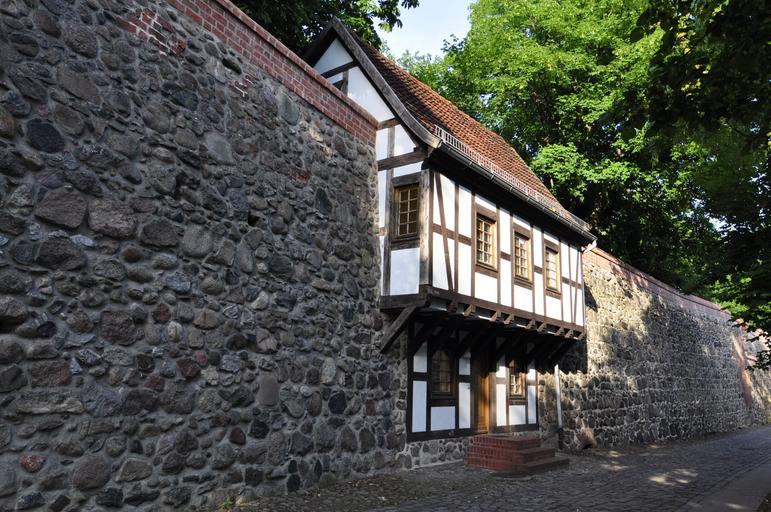 Keywords: fachwerkhaus old home wall neubrandenburg city middle ages truss building historically old town old house architecture cottage facade fachwerkhäuser wood timber framed building window restored city wall historic city walls