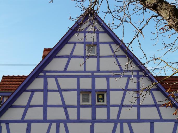 Keywords: fachwerkhaus truss building architecture wood window bar gable purple home facade entablature