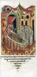 Keywords: Facial Chronicle - b.07, p.165 - Death of Ivan Mikhailovich of Starodub.jpg ЛИЦЕВОЙ ЛЕТОПИС ЫЙ СВОД В том же году п еставился князь Иван ихайлович Ста одубский внук Иванов п авнук Всеволодов http //www akteon-elib ru/LITsIeVOI-LIeTOPISNYI-SVOD-Russkaya-letopisnaya-istoriya-Kniga-7/ 2 century 16 anonymous PD-Old Facial Chronicle v 6 - Ostermanovskiy 1-y tom 1254-1378 Death in medieval miniatures Russia Files uploaded by Shakko from various sources 1315 in Russia Princes of Starodub |
