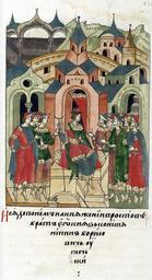 Keywords: Facial Chronicle - b.07, p.037 - Konstantin Borisovich of Uglich enthroned.jpg ЛИЦЕВОЙ ЛЕТОПИС ЫЙ СВОД И сел после него на княжение в Ростове б ат его князь Константин Бо исович Угличский http //www akteon-elib ru/LITsIeVOI-LIeTOPISNYI-SVOD-Russkaya-letopisnaya-istoriya-Kniga-7/ 2 century 16 anonymous PD-Old Facial Chronicle v 6 - Ostermanovskiy 1-y tom 1254-1378 Files uploaded by Shakko from various sources 1294 in Russia Princes of Uglich Princes of Rostov |