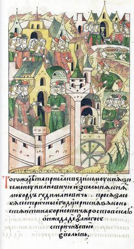 | Keywords: Facial Chronicle - b.08, p.077 - Wedding of Lubord of Volyn.jpg ЛИЦЕВОЙ ЛЕТОПИС ЫЙ СВОД В том же году к великому князю Семену Ивановичу п ислал из Волыни князь Любо д Гедиминович п ося за себя племянницу его дочь князя Константина Бо исовича Ростовского И он отдал за него племянницу свою в Волынь http //www akteon-elib ru/LITsIeVOI-LIeTOPISNYI-SVOD-Russkaya-letopisnaya-istoriya-Kniga-8/ VI century 16 anonymous PD-Old Facial Chronicle v 6 - Ostermanovskiy 1-y tom 1254-1378 Files uploaded by Shakko from various sources 1349 in Russia Princes of Rostov Simeon of Moscow in miniature Princes of Volhynia Weddings in medieval manuscripts Russia Rurik Dynasty |