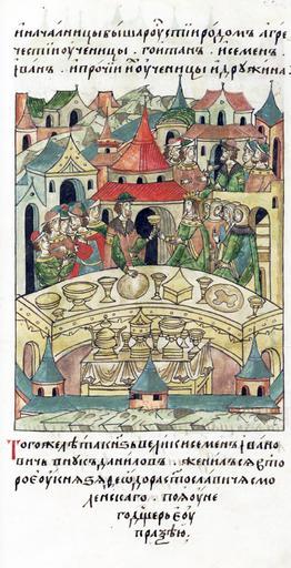 | Keywords: Facial Chronicle - b.08, p.015 - Wedding of Simeon Gordy and Evpraksia Fedorovna.jpg ЛИЦЕВОЙ ЛЕТОПИС ЫЙ СВОД В том году великий князь Семен Иванович внук Даниилов женился вто ой аз взяв в жены дочь князя Федо а Святославича Смоленского Евп аксию http //www akteon-elib ru/LITsIeVOI-LIeTOPISNYI-SVOD-Russkaya-letopisnaya-istoriya-Kniga-8/ VI century 16 anonymous PD-Old Facial Chronicle v 6 - Ostermanovskiy 1-y tom 1254-1378 Files uploaded by Shakko from various sources 1345 in Russia Simeon of Moscow in miniature Eupraxia of Smolensk Weddings in medieval manuscripts Russia |