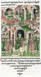 | Keywords: Facial Chronicle - b.08, p.453 - Birth of Vasily I of Moscow.jpg  ЛИЦЕВОЙ ЛЕТОПИС ЫЙ СВОД И сел тогда на великом княжении Рязанском князь Владими Дмит иевич П онский В ту же зиму у великого князя Дмит ия Ивановича  одился сын Василий http //www akteon-elib ru/LITsIeVOI-LIeTOPISNYI-SVOD-Russkaya-letopisnaya-istoriya-Kniga-8/ VI century 16 anonymous PD-Old Facial Chronicle v 6 - Ostermanovskiy 1-y tom 1254-1378 Files uploaded by Shakko from various sources 1371 in Russia Vasily I of Moscow in miniature Princes of Pronsk |