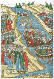 | Keywords: Facial Chronicle - b.09, p.438 - Crossing Oka.jpg И тут выслушав все вести повелел им че ез Оку- еку пе еп авляться и п иказал каждому полку гово я так «Если кто пойдет по Рязанской земле пусть никто ни к чему не п икасается и ничего не возьмет ни у кого и ни единого же волоса не коснется» sterligoff ru/ century 16 anonymous PD-Old Facial Chronicle v 7 - Ostermanovskiy 2-y tom 1378-1424 Files uploaded by Shakko from various sources Battle of Kulikovo in manuscripts Dmitry Donskoy in manuscripts Oka River |