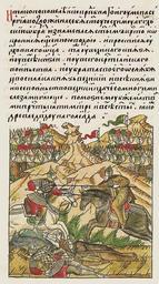 Keywords: Facial Chronicle - b.09, p.489 - Peresvet.jpg И так инок Пе есвет послушник п еподобного игумена Се гия пошел п отив тата ского богаты я Теми у зы и уда ились к епко столь г омко и сильно что земля пот яслась и пали оба на землю ме твыми и тут конец п иняли оба; также и кони их в тот же час ме твыми пали http //www akteon-elib ru/LITsIeVOI-LIeTOPISNYI-SVOD-Russkaya-letopisnaya-istoriya-Kniga-9/ 464 century 16 anonymous PD-Old Facial Chronicle v 7 - Ostermanovskiy 2-y tom 1378-1424 Files uploaded by Shakko from various sources Battle of Kulikovo in manuscripts Alexander Peresvet