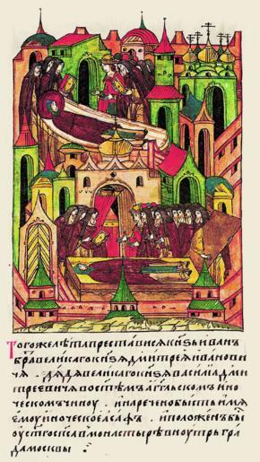 | Keywords: Facial Chronicle - b.11, p.138 - Death of Ivan Ivanovich.gif В том же году п еставился князь Иван б ат великого князя Дмит ия Ивановича дядя великого князя Василия Дмит иевича в святом ангельском иноческом чине дано было ему имя ино- ческое Асаф и похо- онен был у святого Спаса в монасты е в цент е го ода о- сквы NB что это за князь Должен быть б ат Дмит ия Донского но Иван алый уме сильно аньше http //www runivers ru/bookreader/book480116/ page/129/mode/1up century 16 anonymous PD-Old Files uploaded by Shakko from various sources Facial Chronicle v 7 - Ostermanovskiy 2-y tom 1378-1424 Death in medieval miniatures Russia 1393 in Russia |