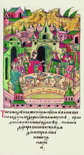 View Original:Facial_Chronicle_-_b.11,_p.359_-_Wedding_of_Ivan_Vsevolodovich_and_Anastasia_of_Moscow.gif (827x1529)