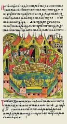 | Keywords: Facial Chronicle - b.13, p. 138 - Wedding of Vasily II and Maria Yaroslavna.gif  Лицевой летописный свод В ту же зиму женился великий князь Василий Васильевич в  оскве месяца фев аля в 8 день взял за себя княжну  а ью дочь Я ослава Владими овича внучку  а ии Голтяевой http //www runivers ru/bookreader/book480451/ page/25/mode/1up century 16 anonymous PD-Old Facial Chronicle v 4 - Golytsinskiy tom 1114-1247; 1425-1472 Files uploaded by Shakko from various sources 1433 in Russia Maria Yaroslavna of Borovsk in miniature Vasily II of Moscow in miniature Weddings in medieval manuscripts Russia |