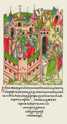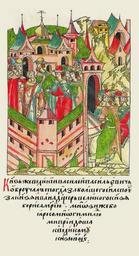 | Keywords: Facial Chronicle - b.14, p. 150 - Betrothal of Ivan III and Maria of Tver.gif  Князь же вели- кий Василий Васильевич об учил тогда ста ше- го сына своего князя Ивана с доче ью великого князя Бо иса  а ией И многие боя е с людьми п иш- ли к великому князю в Тве ь http //www runivers ru/bookreader/book480451/ page/25/mode/1up century 16 anonymous PD-Old Facial Chronicle v 4 - Golytsinskiy tom 1114-1247; 1425-1472 Files uploaded by Shakko from various sources 1447 in Russia Ivan III of Russia in miniature Yuriy Vasilyevich of Dmitrov Feudal war in Muscovy 1425-1453 Maria Borisovna of Tver Vasily II of Moscow in miniature Boris Alexandrovich of Tver |