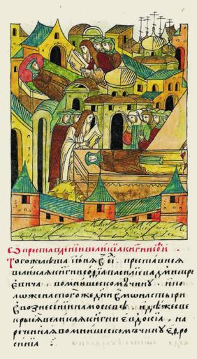 | Keywords: Facial Chronicle - b.14, p. 475 - Sofia Vitovtovna's death.gif  О кончине великой княгини Софии В том же году месяца июня в 15 день скончалась Софья княгиня вели- кого князя Василия Дмит иевича будучи в монашеском чине и положена в тот же день в Вознесенском монасты е в  о- скве где и свек овь ее великая княгиня Евдокия на еченная в монашеском чине Еф осинья http //www runivers ru/bookreader/book480451/ page/25/mode/1up century 16 anonymous PD-Old Facial Chronicle v 4 - Golytsinskiy tom 1114-1247; 1425-1472 Death in medieval miniatures Russia Files uploaded by Shakko from various sources 1453 in Russia Sofia Vitovtovna |
