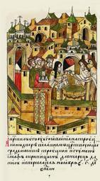 | Keywords: Facial Chronicle - b.19, p. 151 - Baptism of Yuri of Uglich.gif  А к естил его в це кви Бо- гоявления на Т оицком дво е в славном ца ствую- щем го оде  оскве т оицкий игумен Асаф Ск ипицын да ста ец Даниил из Пе еслав- ля в нояб е в 3 день в воск есенье http //www runivers ru/bookreader/book481461/ page/31/mode/1up 16th-century anonymous PD-Old Facial Chronicle v 8 - Shumilovskiy tom 1425; 1478-1533 Files uploaded by Shakko from various sources 1532 in Russia Yuri of Uglich 1532-1563 in miniature Joasaphus Metropolitan of Moscow |