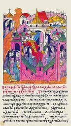 Keywords: Facial Chronicle - b.22, p. 144.gif Лицевой летописный свод http //www runivers ru/bookreader/book482205/ page/43/mode/1up century 16 anonimus Facial Chronicle v 9 - Sinodalniy tom 1533-1542; 1553-1567 Files uploaded by Shakko from various sources PD-Art 1555 in Russia |
