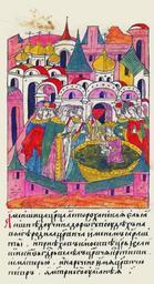 | Keywords: Facial Chronicle - b.22, p. 159.gif А младшая ца ица аст аханская Ельякши по до оге когда ехала в судах на Волге одила ца евича именем Я ашты; и когда п иехала к оскве ца ь и великий князь госуда ь повелел ца евича к естить с мате ью и на ечено имя ца евичу Пет а мате и его имя Ульяна http //www runivers ru/bookreader/book482205/ page/17/mode/1up century 16 anonimus Facial Chronicle v 9 - Sinodalniy tom 1533-1542; 1553-1567 Files uploaded by Shakko from various sources PD-Art | ||||