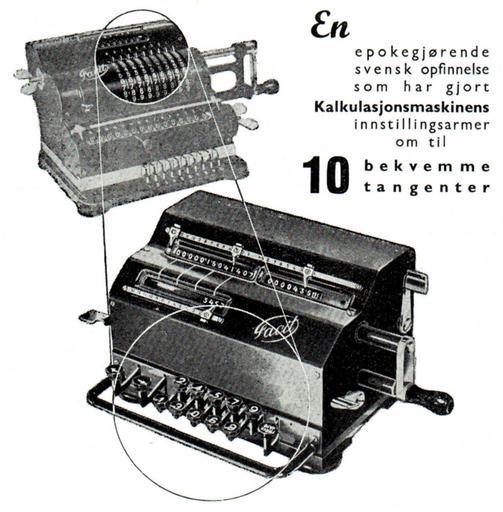 | Keywords: Facit keys 1935.jpg en Advertisement showing the revolutionary new Facit mechanical calculator with ten keys for entering digits Text in Norwegian sv Annonsbild som visar den revolutionerande nya Facit räknemaskinen mekanisk adderare med tio tangenter för att mata in siffror Text på norska Advertisement in http //runeberg org/merkbio/0228 html Merkantilt biografisk leksikon 1935 page 152 for A/S Dalton Machine Co Oslo Norwegian reseller of Facit calculators Author 1935 PD-old Facit Advertisements for mechanical calculators Location not applicable |