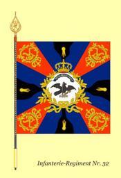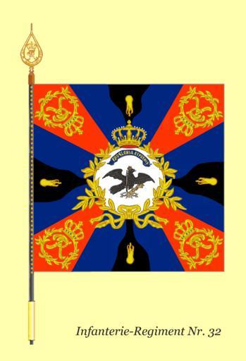 | Keywords: Fahne32 InfRgt 18th century.png  de Fahne des kgl preuß 32 Infanterie-Regiments um 1761 Colors of the royal prussian 32nd Regiment of infantry about 1761 Bandiera della 32° reggimento fanteria Esercito reale da Prussia 1761 Drapeau du 32e Regiment d'infanterie Royaume de Prussie 1761 Preußische Militärvorschrift Steinbeisser Cc-zero Colors of prussian infantry pre 1806 32 |