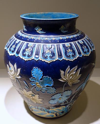 MAKE A MEME View Large Image Fahua jar with lotus pond and heron design, China, Jingdezhen kiln, Ming dynasty, 15th century AD, color glazes within borders - Matsuoka Museum of Art - Tokyo, Japan - DSC07278.JPG en Exhibit in the Matsuoka Museum of Art - 5 Chome-12-6 ...