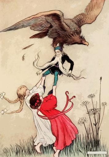 Keywords: fairy tale vintage old antique charming enchanted enchanting retro illustrated warwick goble illustrator story book illustration art fantasy nature bird prey eagle animal wild claws capture kids children old man people