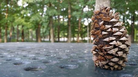Keywords: fall autumn scene hero image season outdoor pine cone leaves scenery woods nature forest park free image royalty free table horizontal landscape