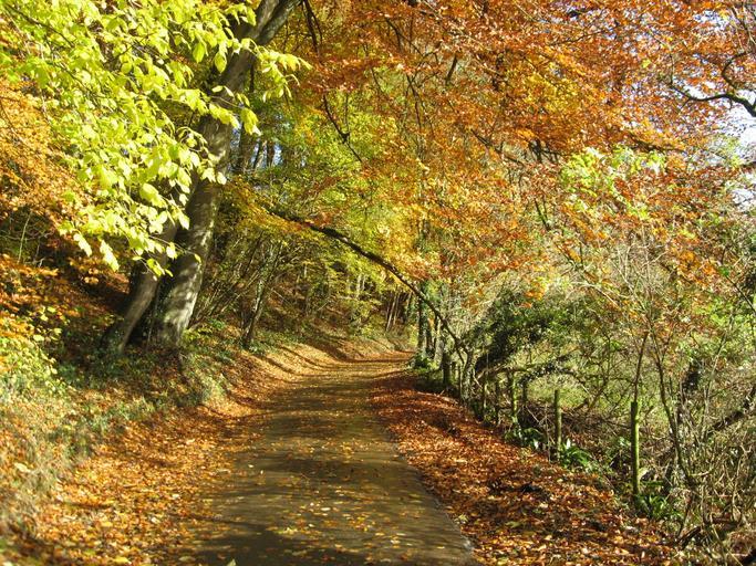 Keywords: fall foliage country lane landscape road less travelled narrow path life countryside scenic colorful rural sunny leaves scenery bright