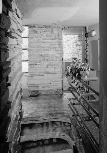 Keywords: Fallingwater - Second floor stair landing - HABS PA,26-OHPY.V,1-60.jpg w Fallingwater State Route 381 Stewart Township Ohiopyle vicinity Fayette County PA - View from second floor hallway towards landing at top of stairway from living room Door at right leads to guest terrace Library of Congress Prints and Photographs Division Historic American Buildings Survey http //hdl loc gov/loc pnp/hhh pa1690 PA 26-OHPY V 1-60 February/March 1985 Jack E Boucher HABS staff photographer PA 26-OHPY V 1-60 hhh pa1690 Interior of Fallingwater |