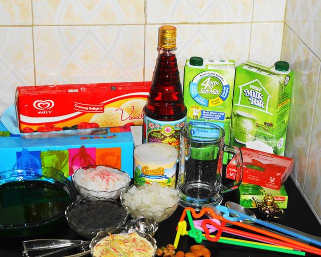 Keywords: Falooda Ingredients.jpg en فالودے میں استعمال ھونے والا سامان 2016-05-29 10 40 59 own Miansari66 other versions cc-zero Cuisine of Karachi Cuisine of Punjab India made by User Miansari66 Cuisine of Pakistan