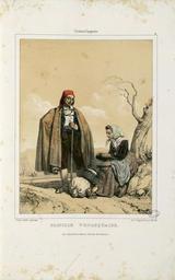 | Keywords: Famille vénasquaise (Pyrénées espagnoles) - Fonds Ancely - B315556101 A FEROGIO 008.jpg Lithographies en couleurs réalisées par Auguste Bry numérotées de 1 à 12 avec indication de la localisation géographique en haut Titre lithographié illustré - Certains exemplaires comprennent 1 à 2 planches supplémentaires Pièces jointes entre les pl 9 et 10 sont encartés 3 f de notes manuscrites concernant la pl 10 représentant des rouliers d'Ossun ou beuraires dont les voitures transportent toutes sortes de marchandises Cartonnage d'éditeur percaline noire titre doré Ancely René 1876 - 1966 Possesseur fre public domain domaine public B315556101_A_FEROGIO_008 jpg image/jpeg 1 f de pl lith en coul ; 38 5 cm Lagarrigue Illustrateur Gihaut frères Imprimeur Bry Auguste Lithographe http //numerique bibliotheque toulouse fr/collect/general/index/assoc//ark /74899/B315556101_A_FEROGIO_008 dir/B315556101_A_FEROGIO_008 jpg Bibliothèque municipale de Toulouse A-FEROGIO 6 Creator François-Fortuné-Antoine Ferogio http //catalogues toulouse fr/web2/tramp2 exe/do_keyword_search/log_in setting_key BMT1 servers 1home query p000404 vignette http //numerique bibliotheque toulouse fr/collect/general/index/assoc//ark /74899/B315556101_A_FEROGIO_008 dir/B315556101_A_FEROGIO_008_thumb jpeg 1841 Famille vénasquaise Pyrénées espagnoles B315556101_A_FEROGIO_008 colour print - lithography - print - colors - color lithograph Women in art Capes Skirts in art Vests Privateers History of Pyrénées Province of Huesca Trees in art Bags Batons in art François-Fortuné-Antoine Ferogio Redingotes in art Children in art Gaiters National costumes in art Roads in art Men in art Couples in art National costumes of Spain Scarves in art People with tuques in art Bodices |