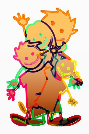 Keywords: family community children together unit smile love responsibility group team boy comic figures father daughter female girl male mother son stick figure