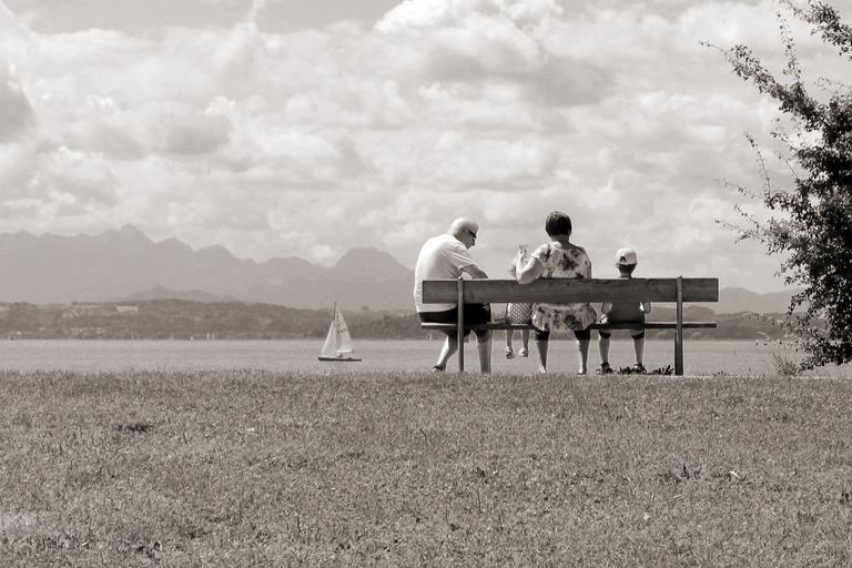 Keywords: family holiday leisure parents children togetherness nature lake water together recovery view seat bank sit rest click