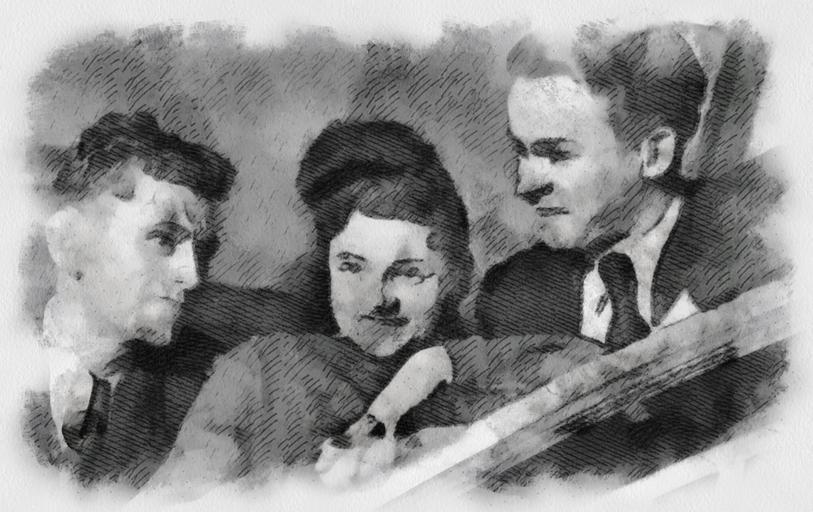 Keywords: family men woman wife book drawing black white