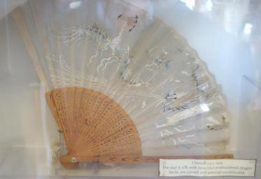 Keywords: Fan from the wreck of The Frolic, 1850, China, view 1 - Point Cabrillo Light Museum - California - DSC01957.JPG en Exhibit in the Point Cabrillo Light Museum California USA 2013-11-07 15 21 18 own Daderot other versions cc-zero Point Cabrillo Light Museum Uploaded with UploadWizard |