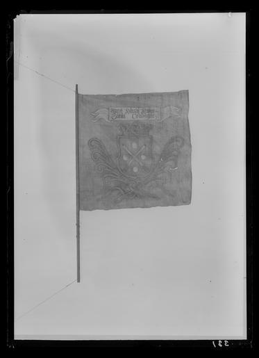 | Keywords: Fana för Sätila socken i Marks härad - Livrustkammaren - 26110.tif Duk av enkel blå linnelärft 2 vertikala våder sammansydda med en smal fällsöm Stad i vertikala ytterkanten Fållen i över och underkanten lagd åt dukens utsida Dekor målad lika på båda sidor I mitten i gult en med öppen krona krönt sköld Nedtill innefattad av två korsade svärd med vita klingor och gula fästen följda av fyra i vinklar ställda vita kulor På det vita inskriptionsbandet text i svartSättilla Giäld Compagnie på insidan Mark härad Wapen // Sättilla Compagnie Fäst med 1 rad sexuddiga tennlickor på ett blått band Bandet har ursprungligen fortsatt 330 mm ned på stången <br/>Stång av trä avsågad brunmålad Holk av mässing original caption 1710 wood Färg brun material trä - brass size mm 98 holk size mm 2445 stång total size mm 1460 size mm 1400 size mm 670 våd yttre size mm 735 våd inre LRK place of origin original filename LN_B01393_004273 53591 inventory number LRK 17037 26110 CC0 Fana för Sätila socken i Marks härad - Livrustkammaren - 26110-negative tif <gallery caption Different images of same object > File Fana för Sätila socken i Marks härad - Livrustkammaren - 34672 tif </gallery> Ensigns Media contributed by LSH unmatched material Media contributed by LSH dim-with multiple size templates Flags in the Livrustkammaren Media contributed by LSH 2013-10 |