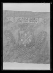 Keywords: Fana för Sätila socken i Marks härad - Livrustkammaren - 34672.tif Duk av enkel blå linnelärft 2 vertikala våder sammansydda med en smal fällsöm Stad i vertikala ytterkanten Fållen i över och underkanten lagd åt dukens utsida Dekor målad lika på båda sidor I mitten i gult en med öppen krona krönt sköld Nedtill innefattad av två korsade svärd med vita klingor och gula fästen följda av fyra i vinklar ställda vita kulor På det vita inskriptionsbandet text i svartSättilla Giäld Compagnie på insidan Mark härad Wapen // Sättilla Compagnie Fäst med 1 rad sexuddiga tennlickor på ett blått band Bandet har ursprungligen fortsatt 330 mm ned på stången <br/>Stång av trä avsågad brunmålad Holk av mässing original caption 1710 wood Färg brun material trä - brass size mm 98 holk size mm 2445 stång total size mm 1460 size mm 1400 size mm 670 våd yttre size mm 735 våd inre LRK place of origin original filename LN_B01394_004274 53591 inventory number LRK 17037 34672 CC0 Fana för Sätila socken i Marks härad - Livrustkammaren - 34672-negative tif <gallery caption Different images of same object > File Fana för Sätila socken i Marks härad - Livrustkammaren - 26110 tif </gallery> Ensigns Media contributed by LSH unmatched material Media contributed by LSH dim-with multiple size templates Flags in the Livrustkammaren Media contributed by LSH 2013-10