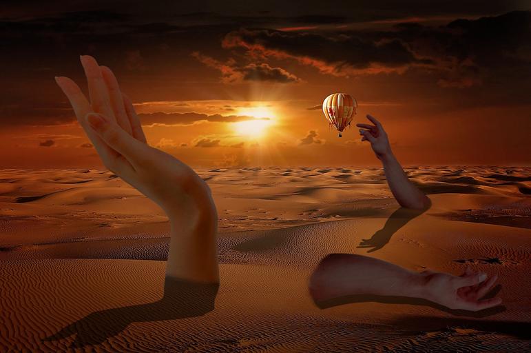 Keywords: fantasy hands surreal hot air balloon clouds sunset sunrise sun open hand light dessert bright