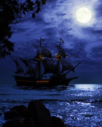 Keywords: fantasy pirate adventure ship treasure captain sailor travel drawing old sea imagination seafaring sail skull chest wooden boat