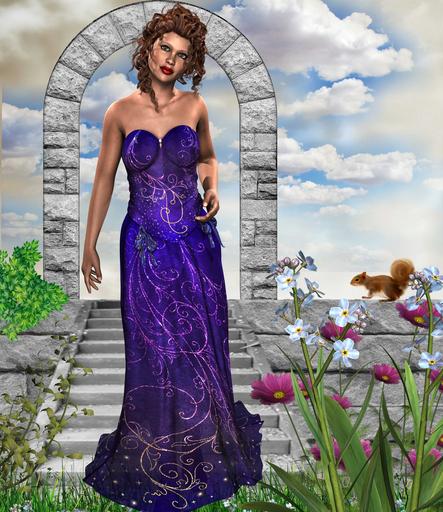 Keywords: fantasy woman fairy flowers garden spring fairy tale mystic paradise magic supernatural spirit squirrel portal gate castle