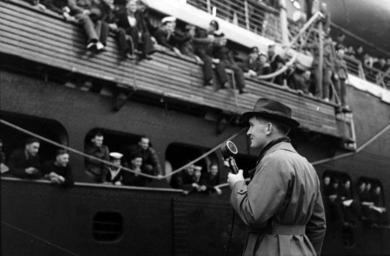 Keywords: black and white blackandwhite australian war memorial australianwarmemorial unesco audiovisual heritage recording blackandwhite monochrome black and white ID number: 002268/11 Photographer: Edward ‘Ted' L F Cranstone Place: Melbourne, Australia An ABC journalist records a description of the scene as the troopship Orontes sails from Melbourne. Rights Info: No known copyright restrictions. This photograph is from the Australian War Memorial's collection www.awm.gov.au Persistent URL: www.awm.gov.au/collection/002268/11/ ID number: 002268/11 Photographer: Edward ‘Ted' L F Cranstone Place: Melbourne, Australia An ABC journalist records a description of the scene as the troopship Orontes sails from Melbourne. Rights Info: No known copyright restrictions. This photograph is from the Australian War Memorial's collection www.awm.gov.au Persistent URL: www.awm.gov.au/collection/002268/11/