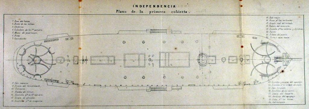 Keywords: Fargata independencia 1a cubierta.jpg Plano de la primera cubierta de la fragata blindada Independencia Apuntamientos sobre la fragata blindada Independencia 1866 Aurelio García y García PD-old BAP Independencia ship 1866